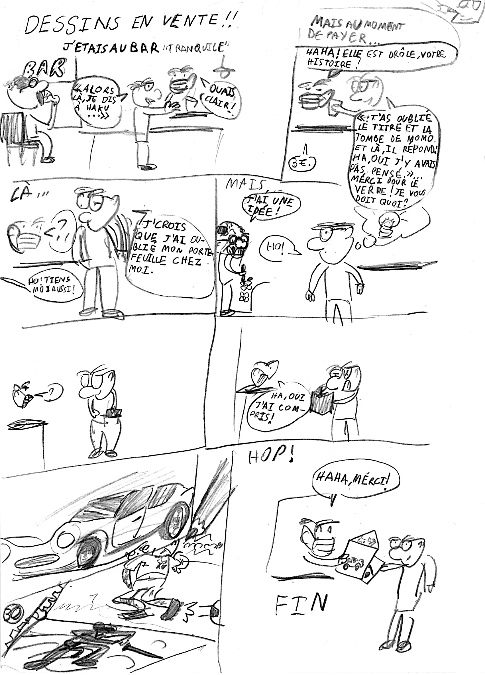 « Interdit aux voituresEuh, pas de gag aujour'hui »Dessins en venteJanuary 22, 2021 • T.T.Comme certains peintre, T.T. donne des dessins pour payer ses consommations au bar !( Dessin en vente )