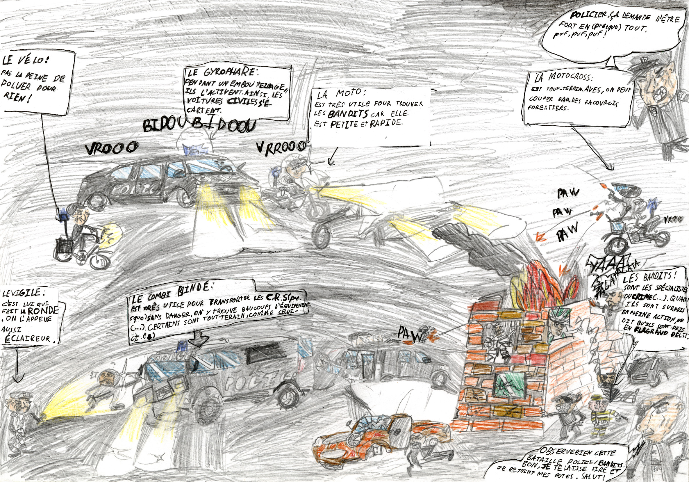 Pour changer un peu, je cherchais de nouvelles idées et je suis tombé sur ce vieux dessins de 2020 qui était sur le frigo. Donc, au menu, un peu de documentation à propos de la police.