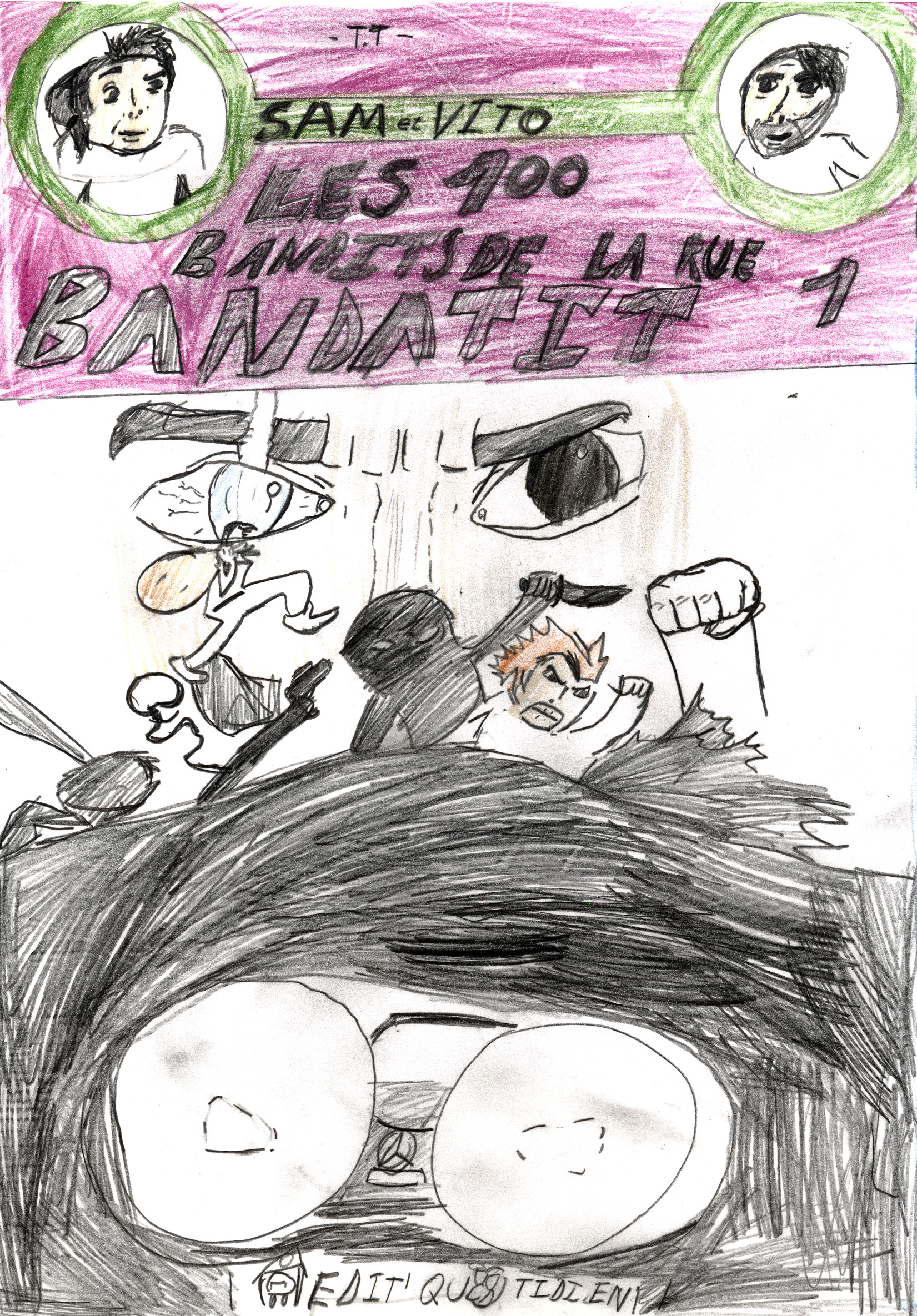 Youpi ! Bon, j'ai du changer un peu le programme, en attendant le tome 2 des aventures de T.T, je sors un nouvel album, Sam et Vito, Les 100 bandits de la rue Bandatit.