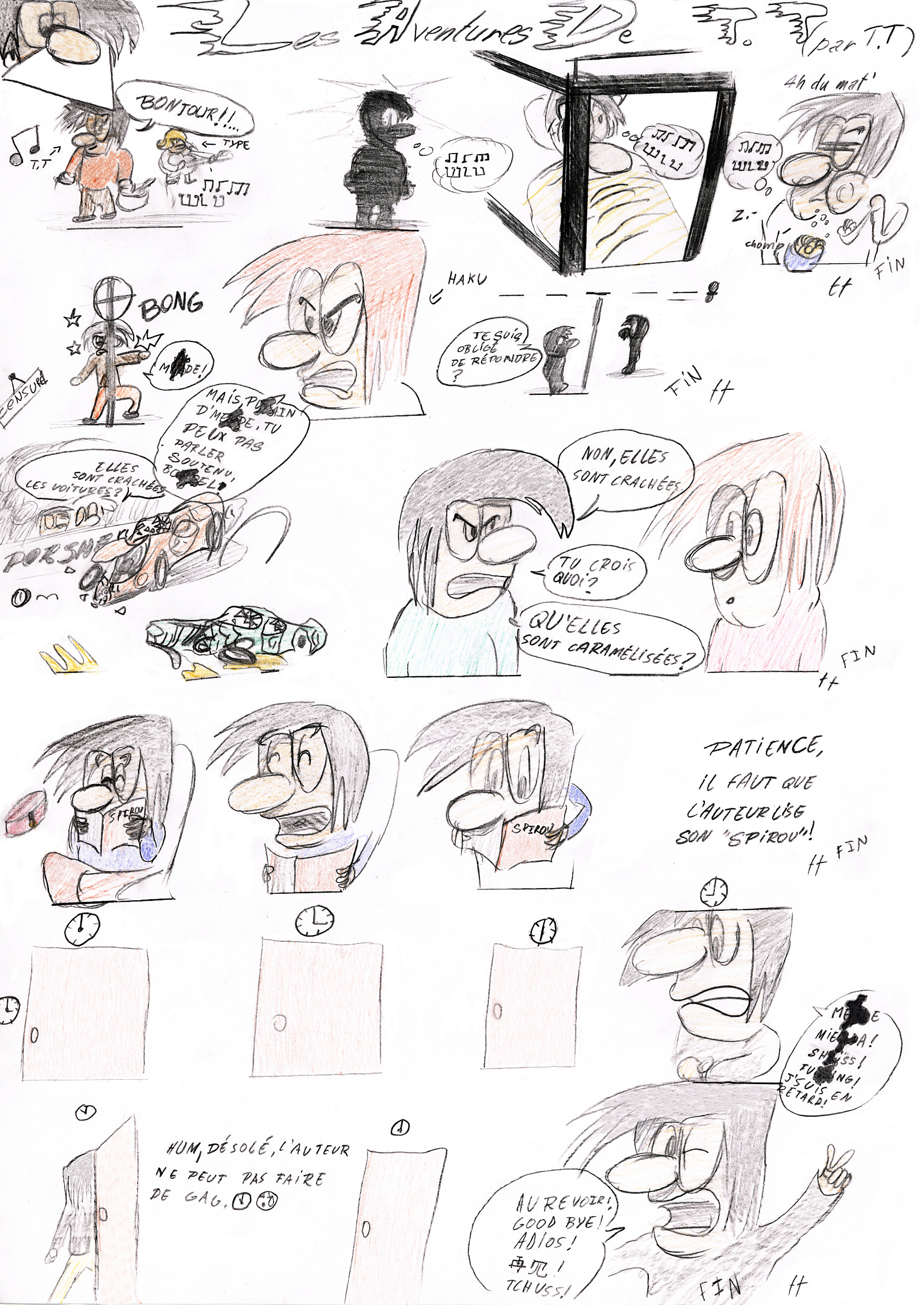 Des petits gags en strips (des gags courts) et une nouvelle version de T.T. Le style est en test, n'hésitez pas à me contacter pour me dire si cela vous plaît ou pas.