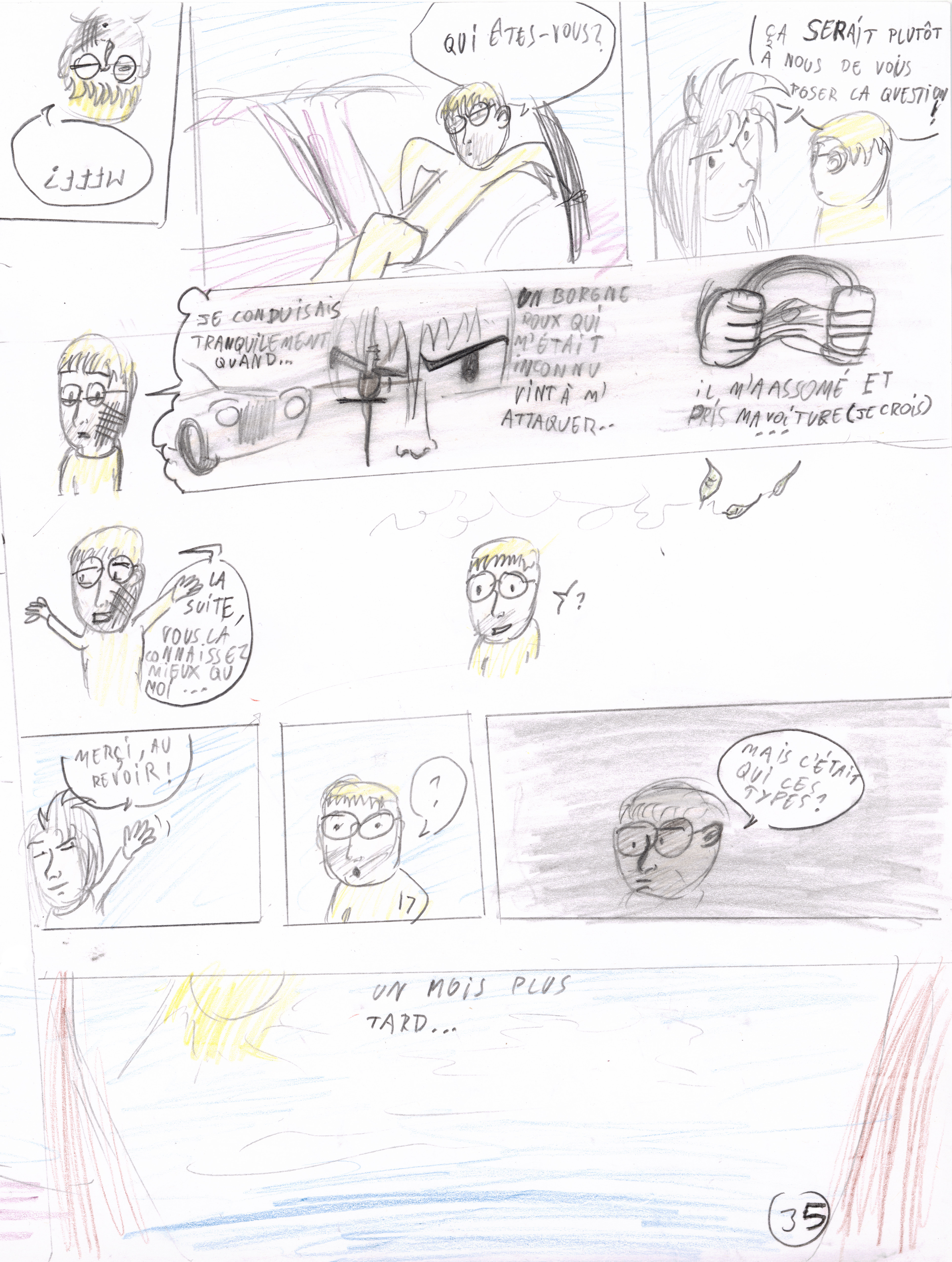 « Sam et Vito, page 36Sam et Vito, page 34 »Sam et Vito, page 35November 2, 2021 • T.T.Ils découvrent quelqu'un. Apparement c'est le propriétaire du véhicule. Il leur raconte ce qu'il s'est passé.Page 35