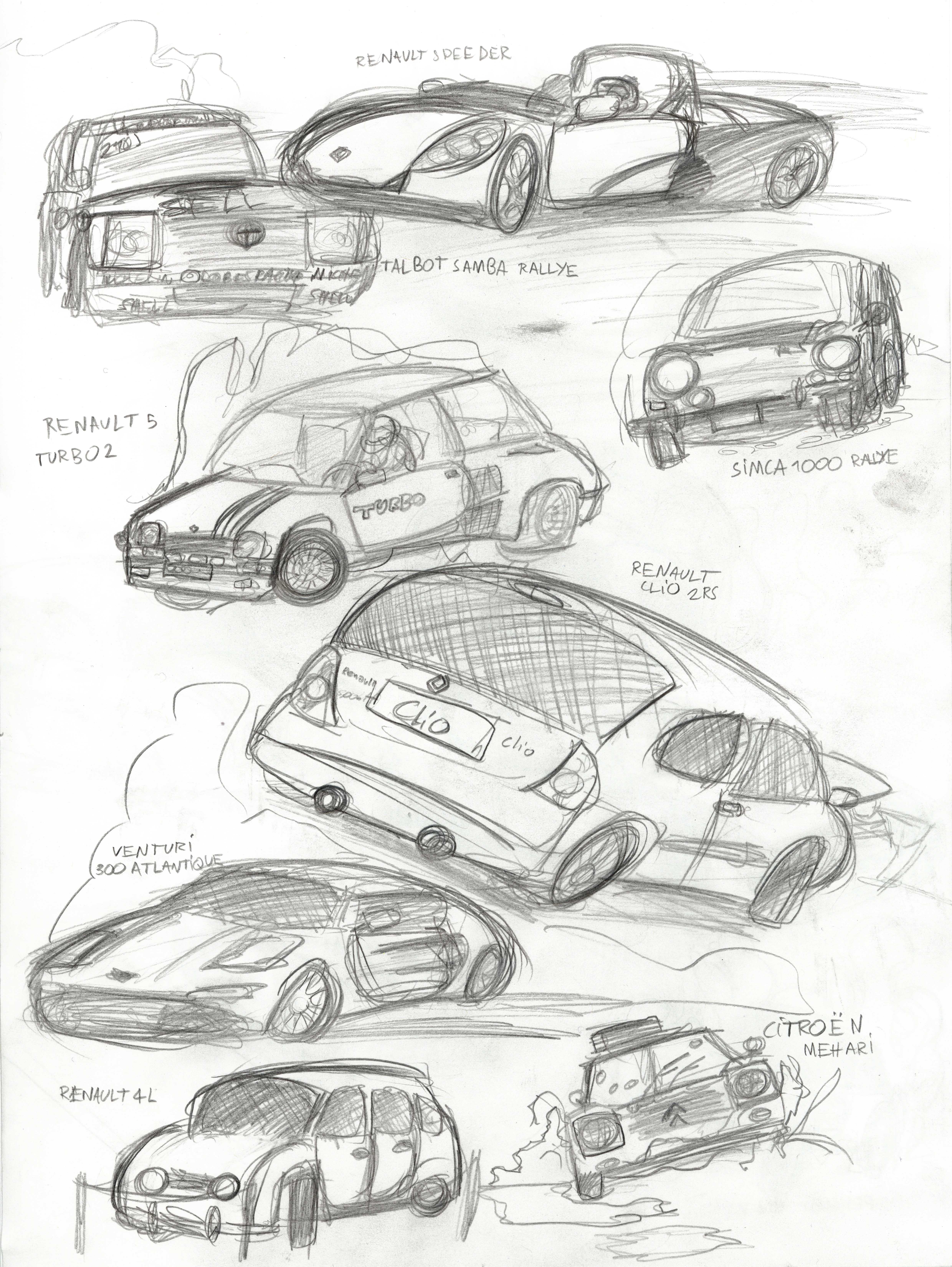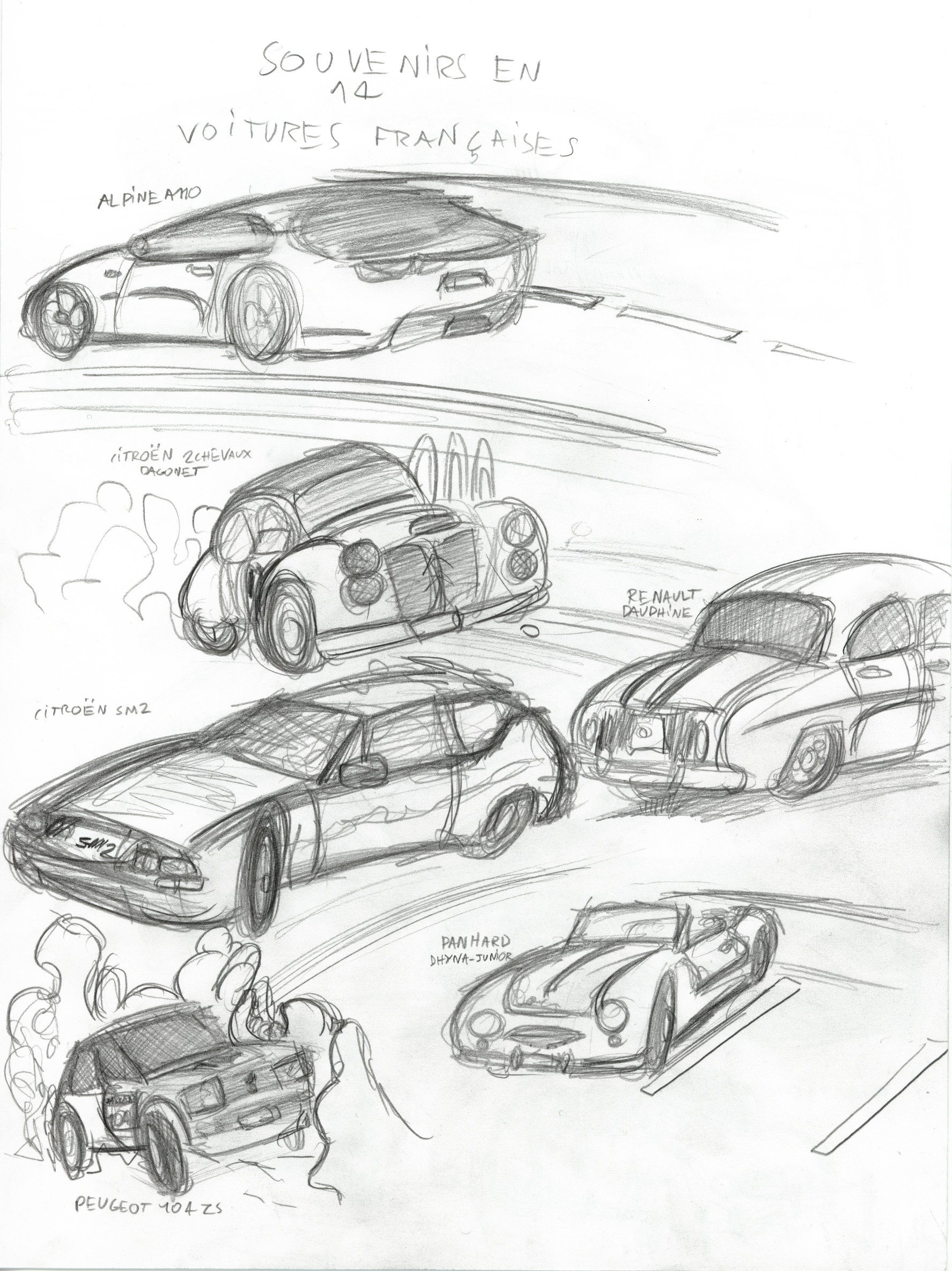 Dans ce post retrouvez 14 voitures françaises cultes sous forme de croquis.