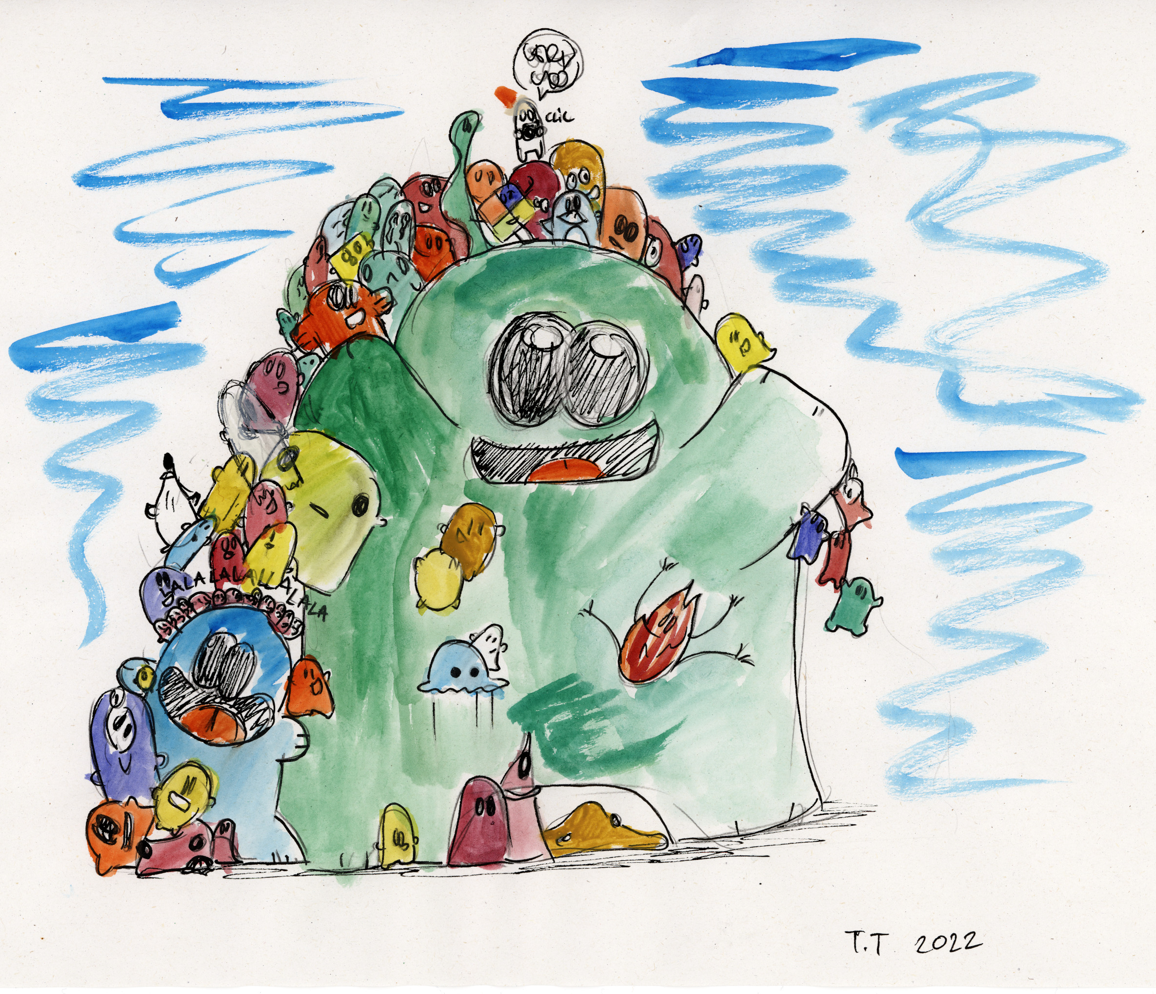 Bonne annee !(Desole j'ai un cavier QWERTY) J'ai eu l'idee de faire des petites aquarelles pour m'amuser. Pas de chichis:du papier classique et un style BD!